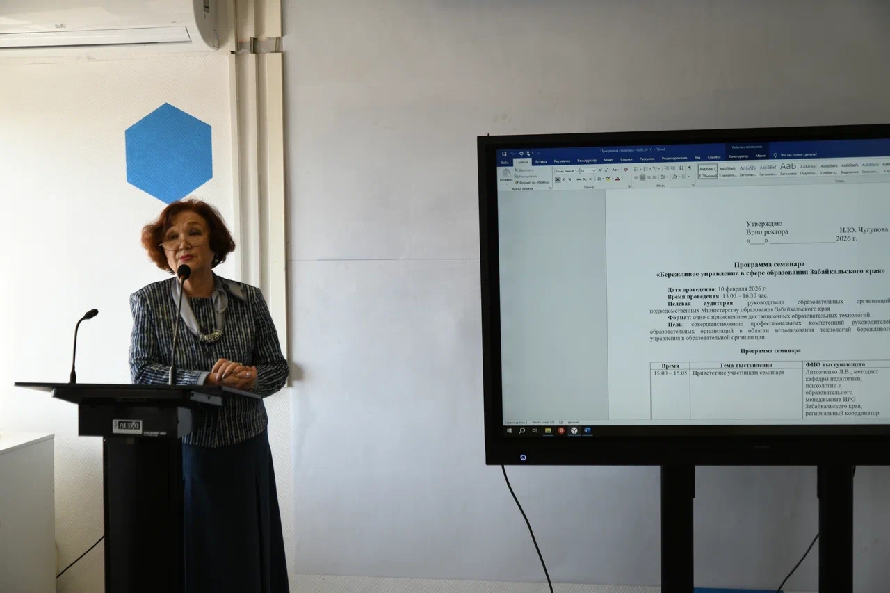 10.02.2026г, в ГУ ДПО «ИРО Забайкальского края» прошел региональный научно-практический семинар, организуемый в рамках реализации проекта «Бережливое управление в сфере образования Забайкальского края» для руководителей образовательных организаций, подведомственных Министерству образования Забайкальского края. Цель семинара: совершенствование профессиональных компетенций руководителей в области использования технологий бережливого управления в образовательных организациях.