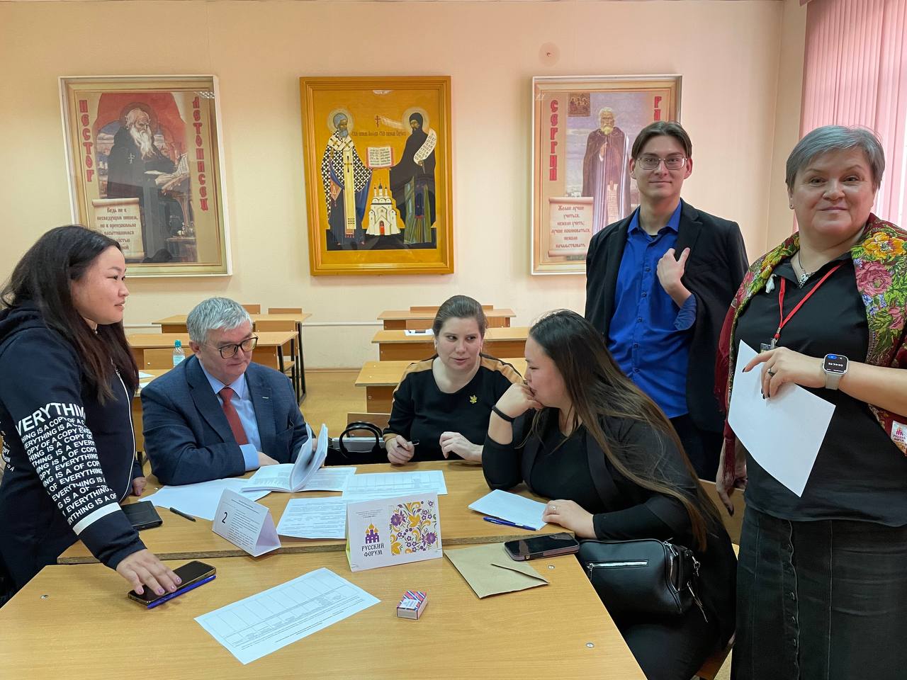 В рамках работы интерактивных площадок педагоги и студенты – будущие учителя смогли обсудить конкретные пути и способы реализации идей «русского мира» в образовательной практике. Состоялось обсуждение: